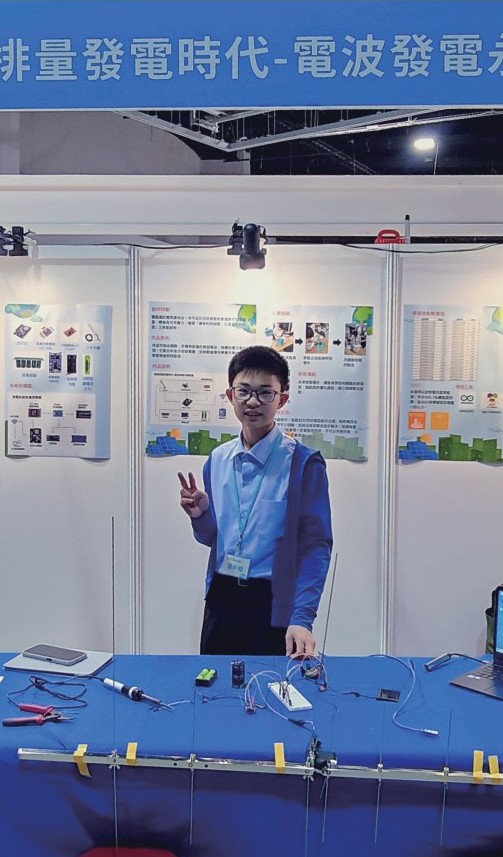 本作品設計一套創新的電波能量收集系統,透過八木天線收集環境中的Wi-Fi、藍牙等無線電波,經由能量轉換器將電波轉化為可用電力。系統配備ESP32主控板,能即時監測發電量並透過手機APP查看數據。裝置具備自動調向功能,可偵測最佳收集方向以提升效率。此設計不僅提供潔淨能源,更能反映區域網路訊號強度,符合SDGs永續發展目標,為2050淨零碳排貢獻心力。